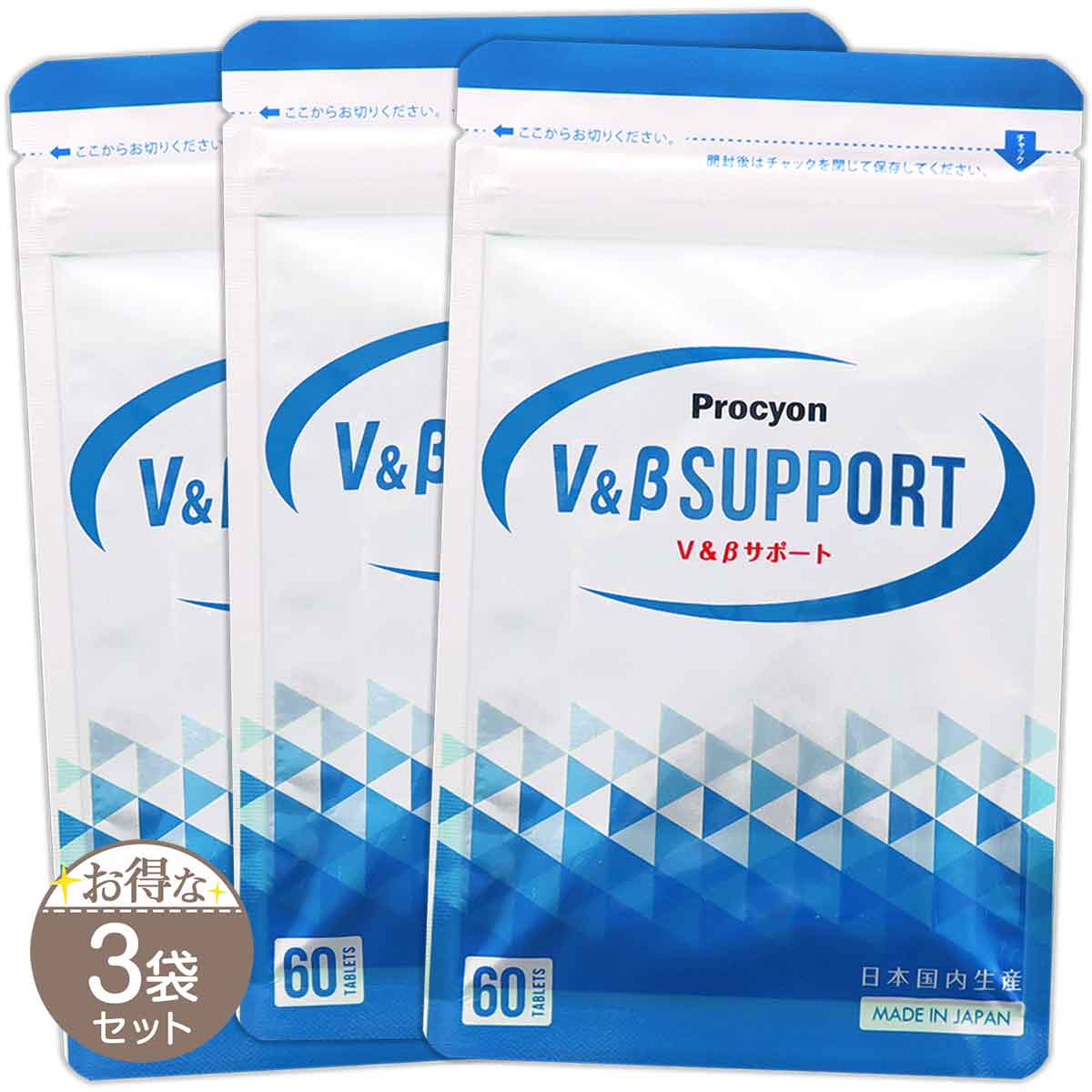 3袋セット プロキオン Procyon V&β 60粒 京福堂 滋養強壮 栄養 補給 メンズ疲労 活力 ケア にんにく 栄養機能食品 V&BサポートS01-01 PCYVBS-03P
