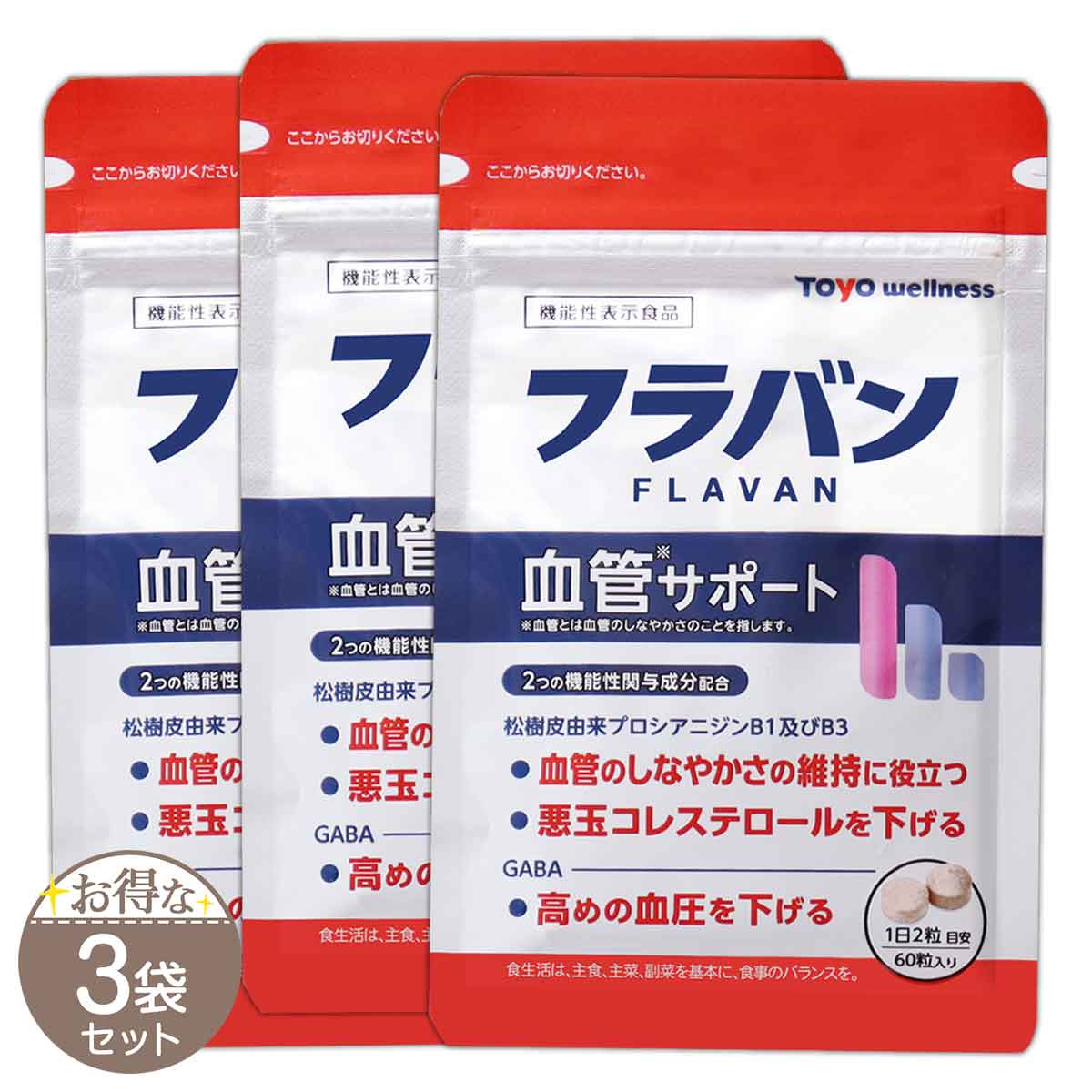 3袋セット フラバン 血管サポート 60粒 30日分 サプリメント フラバンジェノール 血圧 高め 低血圧 悪玉 コレステロール 血管 機能性表示食品 フラバンS07-01 FLAVAN-03P
