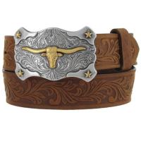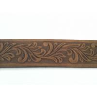 ★ロングホーンがデザインされたバックルと、フローラルデザインがエンボス加工されたベルト革が特徴です。カラーはブラウンです。