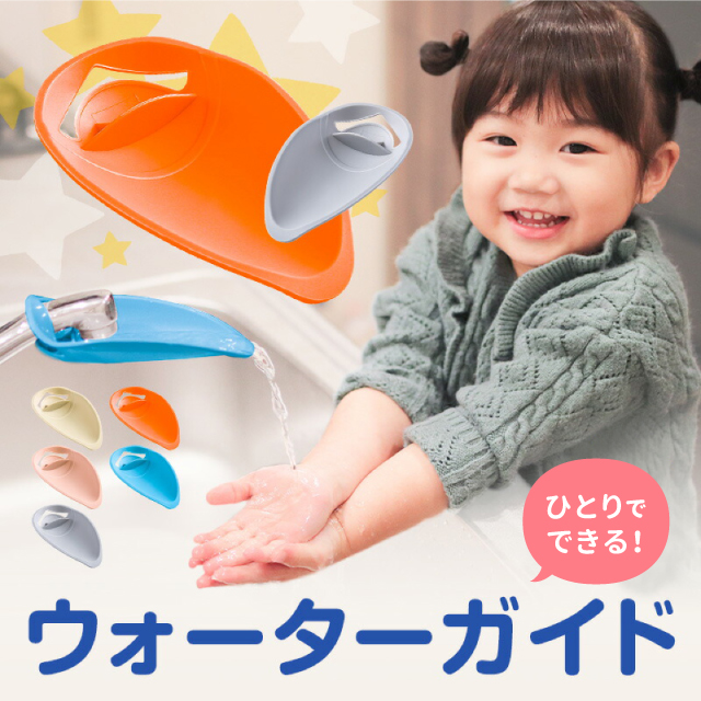 ウォーターガイド 蛇口 子供 手洗い 届かない 便利グッズ キッズ 補助 サポート かわいい ブルー オレンジ アイボリー ピンク グレー 1年保証 ポイント消化