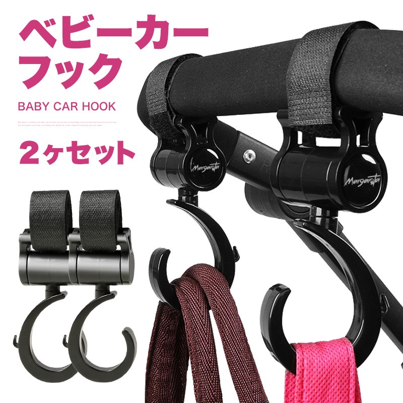 ベビーカー フック クリップ 360度回転 2個セット マルチ 荷物掛け 荷物かけ フック ホルダー 多機能 ママ 便利 アイテム マザーズバッグ 赤ちゃん