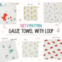 ループ付きタオル 3枚セット モスリンコットン100% 北欧イラスト 6枚ガーゼ お手拭き ハンドタオル お子様 幼児 乳児 赤ちゃん 新生児 ママ 出産祝い
