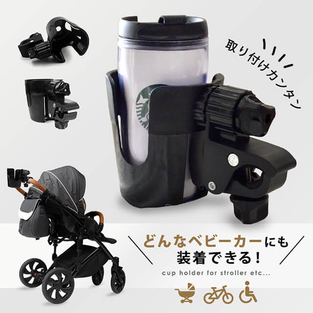 ベビーカー専用 ドリンクホルダー ボトルホルダー ボトルケージ ペットボトル 飲み物 ドリンク カフェ 哺乳瓶 水筒 360度回転 車椅子 自転車