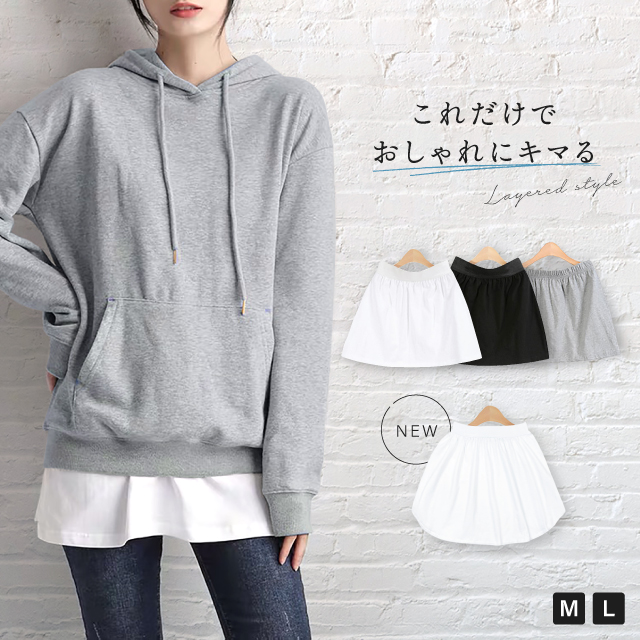 スリットレイヤードTシャツ つけ裾 付け裾 レイヤードトップス Tシャツ スリット スリット 重ね着風 裾 おしゃれ プラス