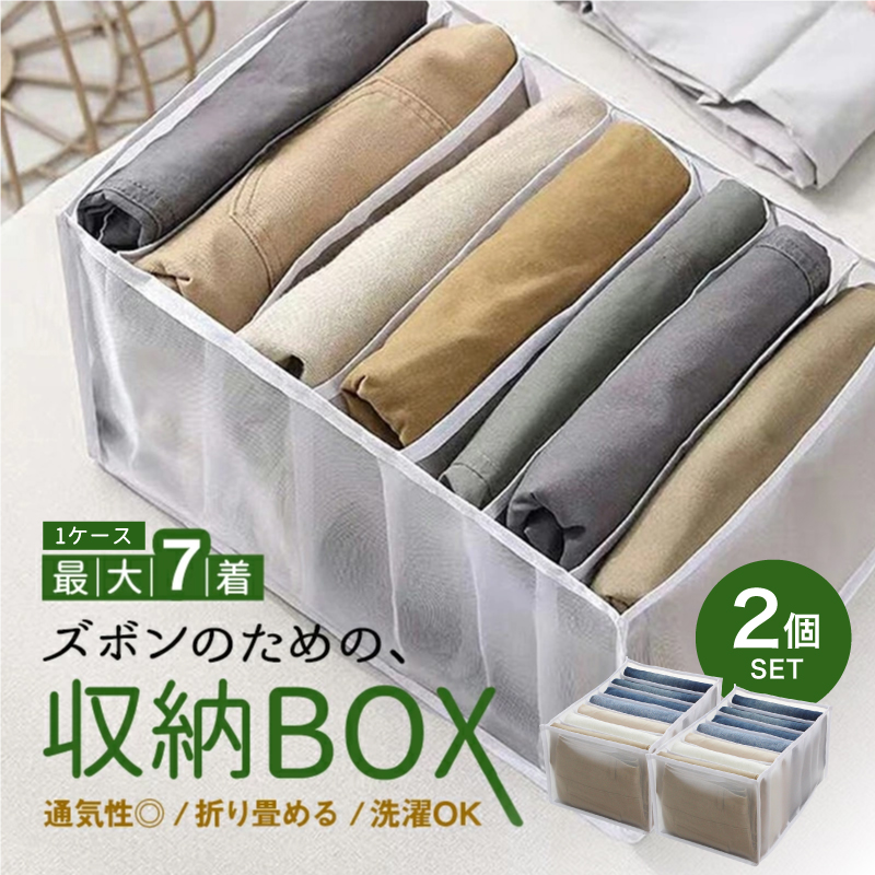 ズボン収納ケース 収納ケース 2個セット 収納ボックス 収納 仕切り ズボン ジーンズ 衣類 パンツ Tシャツ ケース 7枚収納 便利 きれい 整理整頓 水洗い