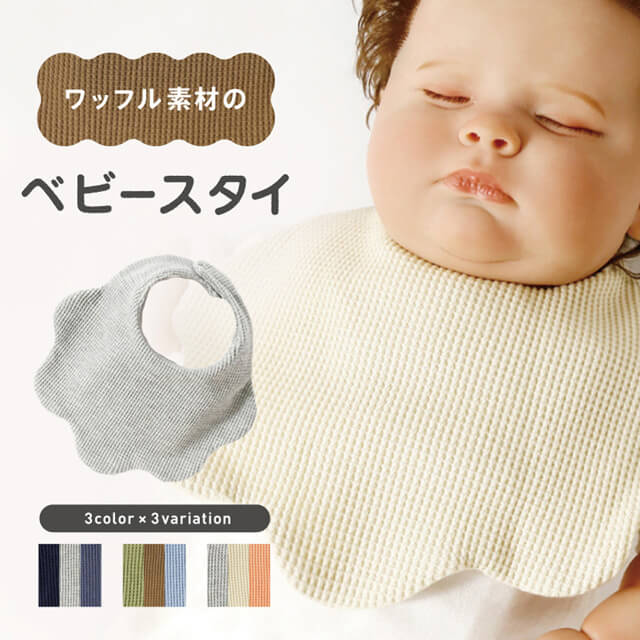 スタイ セット 3枚 無地 コットン 綿100% ワッフル おしゃれ 女の子 男の子 よだれかけ ベビービブ よだれカバー お食事エプロン ビブ
