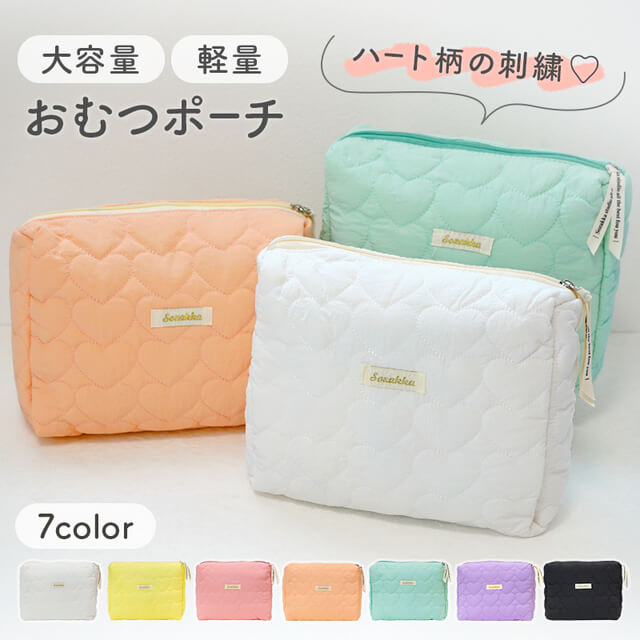【一つでまとまる】 おむつポーチ 大容量 ハート柄 軽量 おしり拭き キルティング おむつ ウェットティッシュ 着替えバッグ おむつ入れ ポーチ おむつ