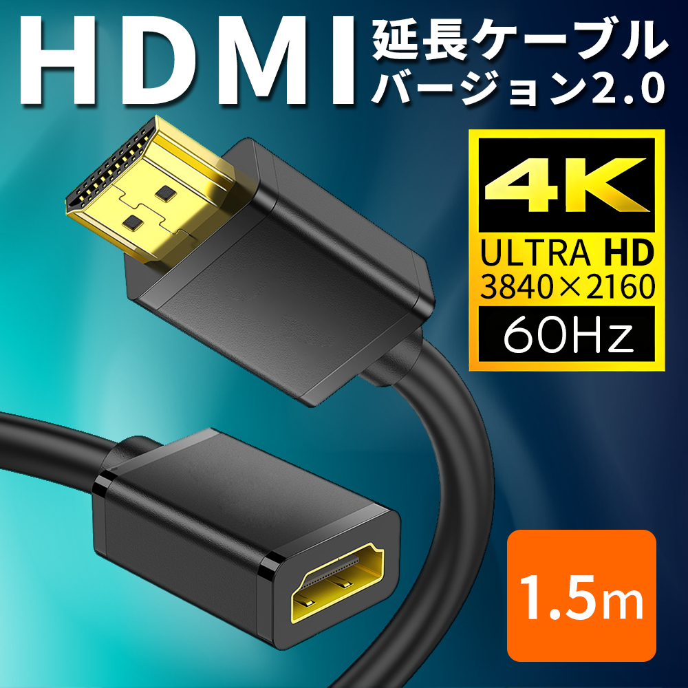 HDMI延長ケーブル HDMI 延長 HDMIケーブル 延長ケーブル 4K ARC対応 1.5m オスメス タイプA 2.0