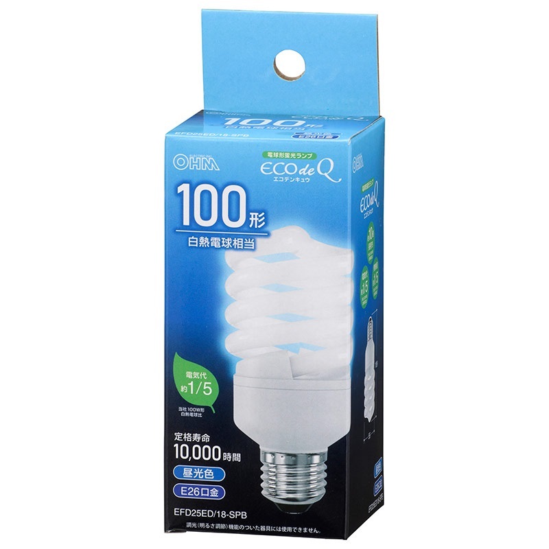オーム電機 EFD25ED/18-SPB 電球形蛍光灯 スパイラル形 E26 100形相当 昼光色 エコデンキュウ【品番:06-3777】