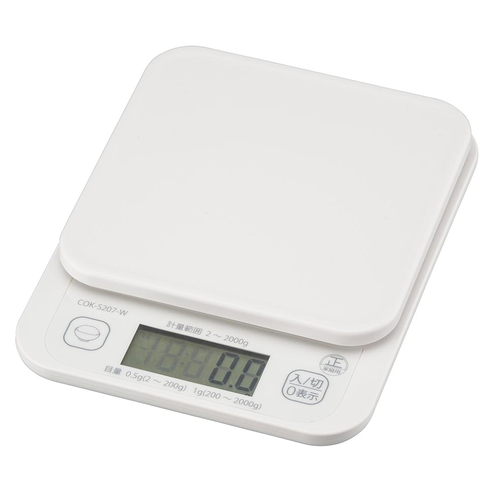オーム電機 クッキングスケール 2KG計 ご飯カロリーボタン付き COK-S207-W【品番:08-1200】