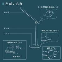 オーム電機 DS-LD96AG-W LEDデスクライト 4段階調光 750ルーメン ホワイト 【品番:06-3865】タッチ式4段階調光 ヘッド部分180度調節可能