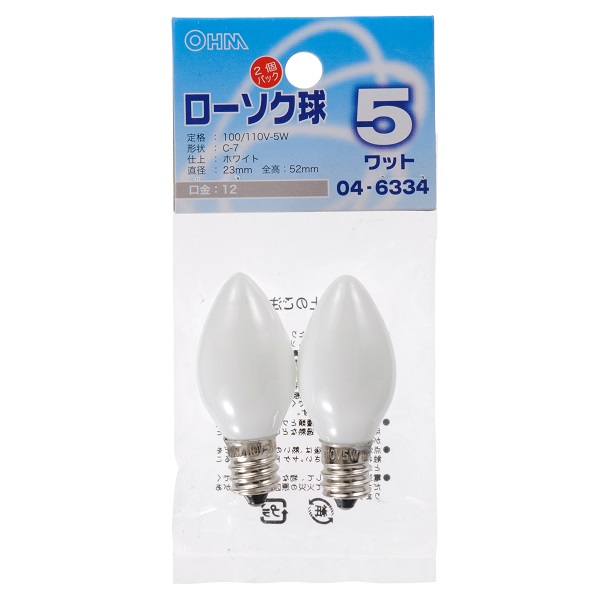 オーム電機 ローソク球 5W E12 ホワイト 2個入 LB-C7205-W/2P 【品番:04-6334】