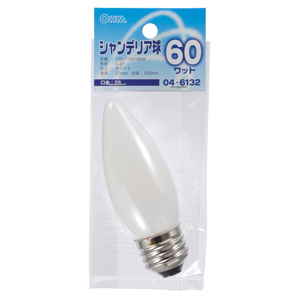 オーム電機 シャンデリア球 60W E26 ホワイト LB-C7660-W 【品番:04-6132】