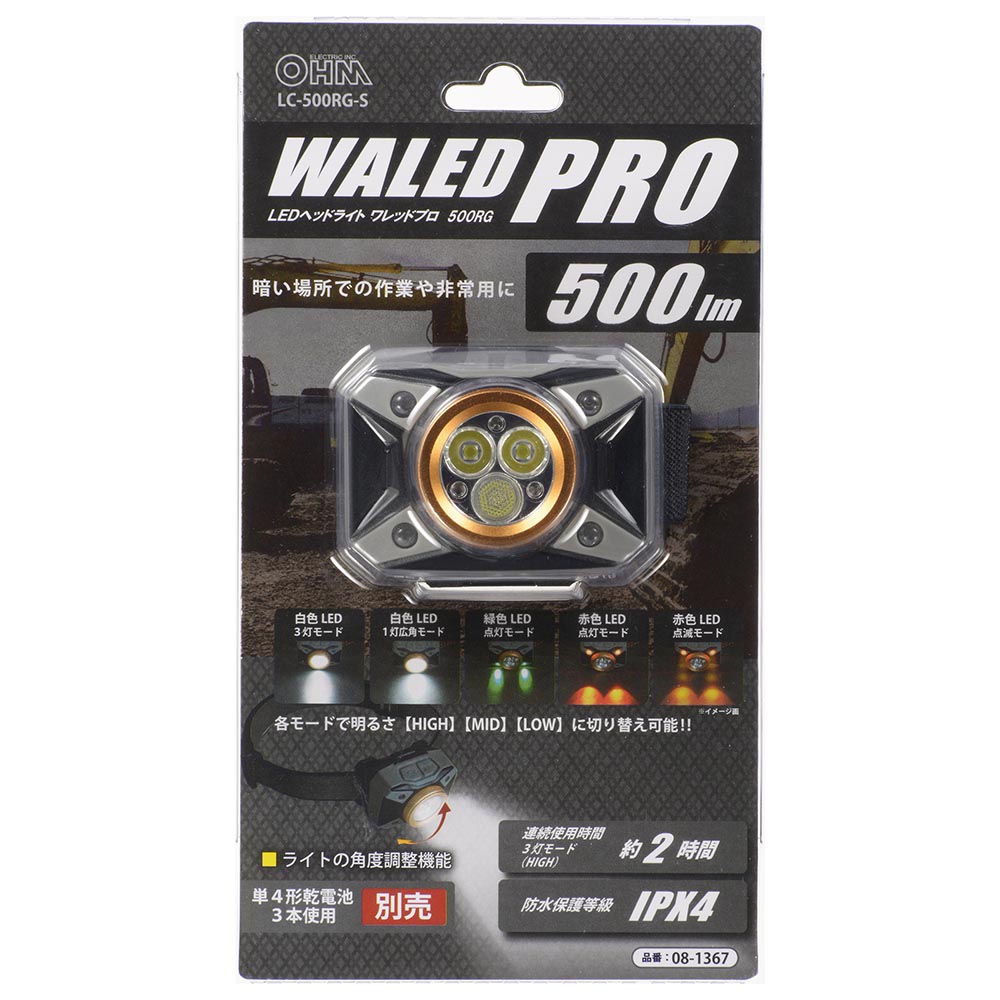 オーム電機 LEDヘッドライト ワレッドプロ 500ルーメン LC-500RG-S【品番:08-1367】