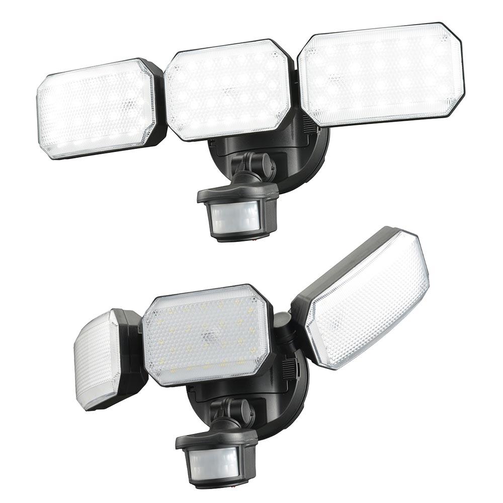 オーム電機 monban 防犯センサーライト 3灯 リチウム充電池式 2500ルーメン LS-B313【品番:07-8803】