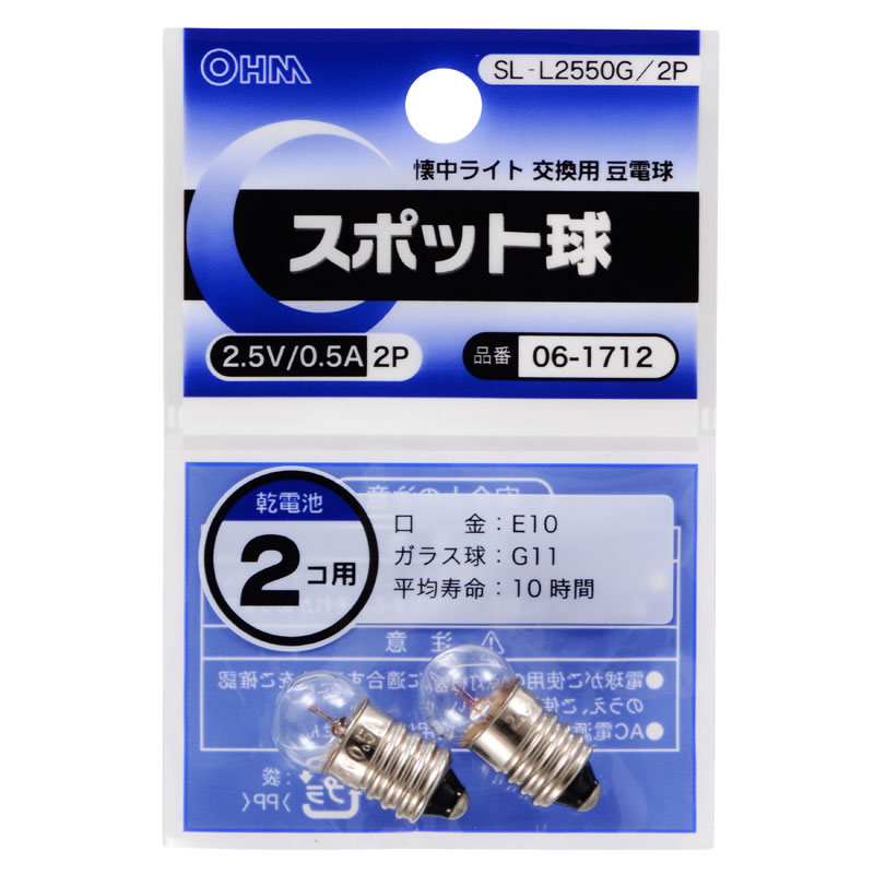 オーム電機 スポット球 2.5V/0.5A 2個入 SL-L2550G/2P 【品番:06-1712】