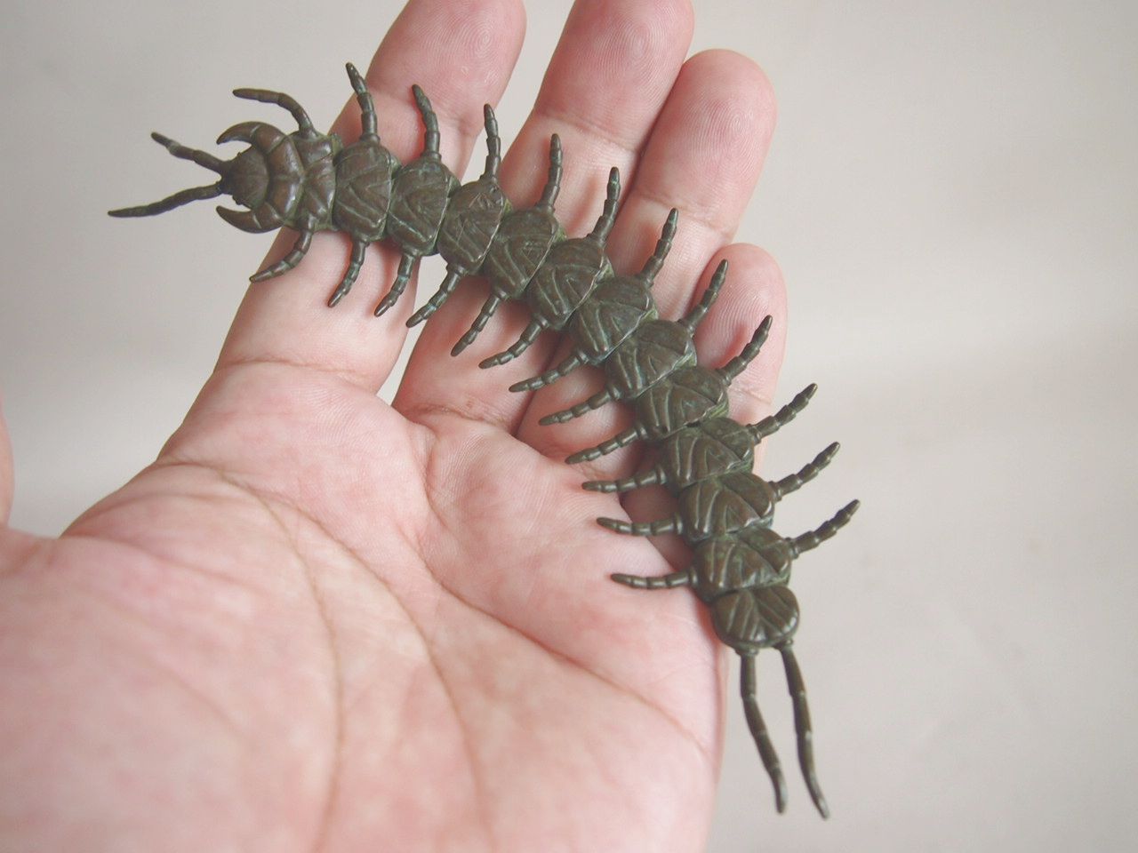 | 大正 昭和レトロ ブロンズ製 珍品 自在ムカデ置物15cmです。 一見すると 『キャー!』と 黄色い悲鳴が聞こえてきそうな リアルな造形ですが 古来より縁起物とされ ムカデは前進するのみで 後退しないという百足の習性から 武田信玄の旗指物 前進するのみで後退しないという 百足(ムカデ)の習性から、 好まれていました。 胴の関節を一つ一つ 可動するように制作されており かなり繊細かつ しっかりした真面目な造りで よくこのような品を 制作したと感嘆させられます。 昆虫好きの方 どちらかというと 人を驚かせて喜べる^^; アイテムだと思います。 年期が感じられますが 総じて良好です。 古い品ですので画像もご確認の上 ご検討ください。 ★サイズ(約寸) 長さ15cm 幅4cm 重量60gほど 盆栽の傍らに添配などにも◎ 話題性もあります。 ユニークな空間を お愉しみください♪ |