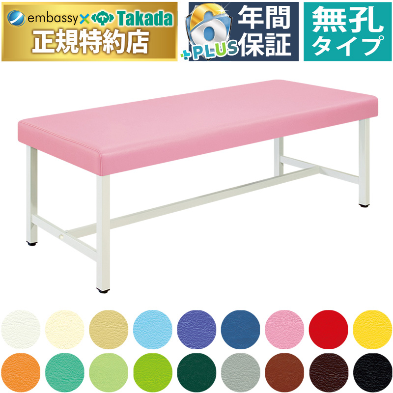 一般的な医科向け診察台・鍼灸治療・電気治療の施術台として開発。ベッド脚部を外側に取り付けることで外観上の安心感と安定性を実現。床面との隙間を微調整できる直径3.8cmの便利なアジャスター付き。こちらの商品は無孔タイプです。