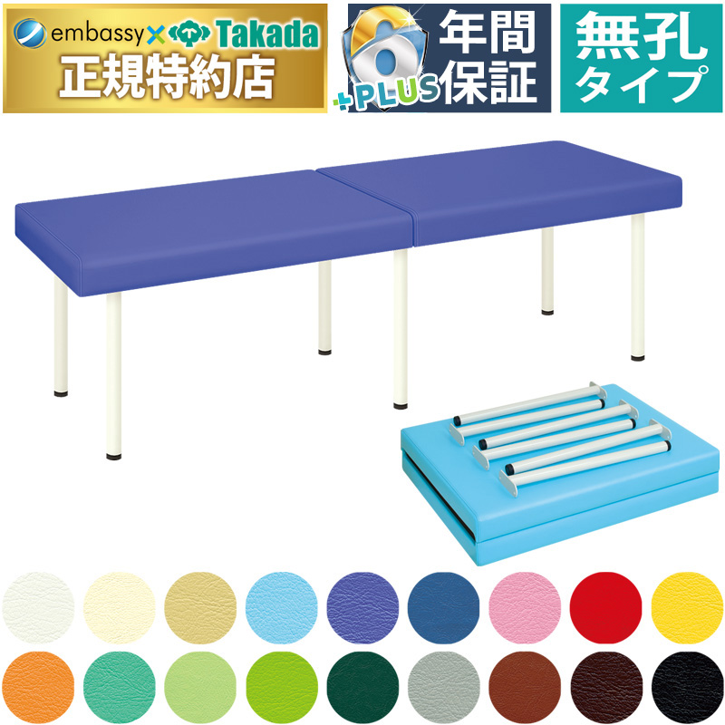 持ち運びにもかさばらないシート(天板)分割タイプのマッサージベッド。災害等の緊急時にも活躍するコンパクト収納を実現。安心の6本脚仕様。床面との隙間を微調整できる直径3.8cmの便利なアジャスター付き。こちらの商品は無孔タイプです。