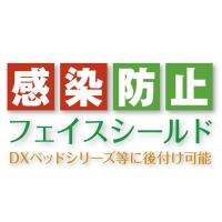 DXベッドシリーズ等に後付けが可能な感染防止フェイスシールド。マスクを着用しづらい施術から患者様を守る飛沫感染防止アイテム。製品によっては取付できない場合もございますので予めご了承ください。