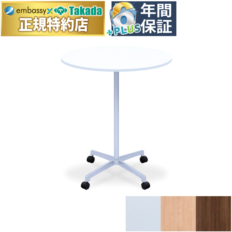 少人数のカンファレンス等マルチに使用可能な円形タイプのテーブル。軽量で耐食性が良く清潔感を演出できるアルミ製4本脚ベースを採用。ポリエステル化粧板仕上。直径5cmの双輪キャスタータイプ。ご注文時に高さをお選びください。※高さ調節機能はございません。