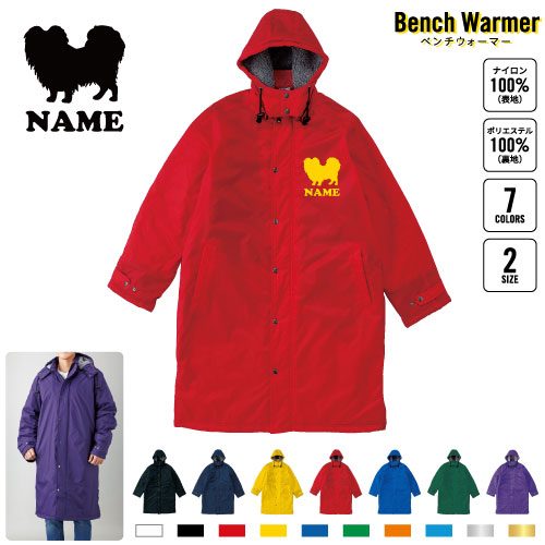 パピヨン 犬種別ドッグシルエット 名入れベンチウォーマー 名入れベンチコート ボアジャケット コート