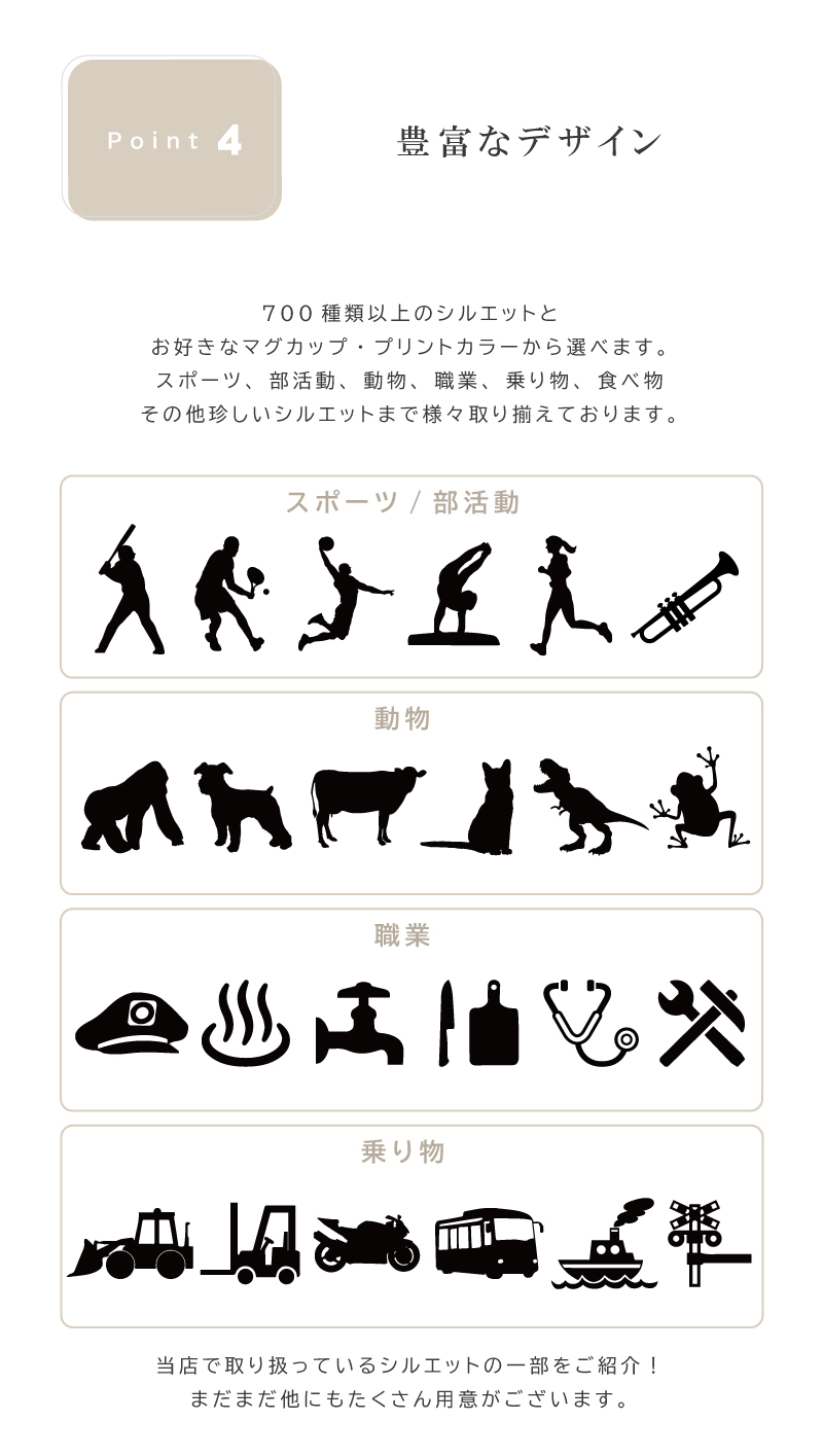 プレゼントやギフトに大人気のシンプルデザインのワンポイントシルエットマグカップ。