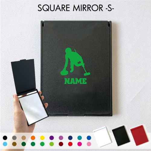 カーリング2 名入れコンパクトミラー 折りたたみ 小さい 卓上ミラー スタンドミラー 折立鏡 手のひらサイズ 名入れグッズウィンタースポーツ
