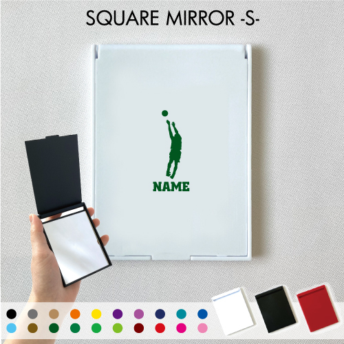 バスケ2 名入れコンパクトミラー 折りたたみ 小さい 卓上ミラー スタンドミラー 折立鏡 手のひらサイズ 名入れグッズ バスケット ボール 団体