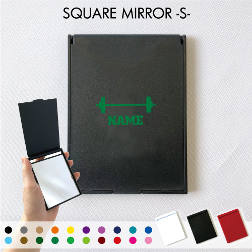 バーベル 名入れコンパクトミラー 折りたたみ 小さい 卓上ミラー スタンドミラー 折立鏡 手のひらサイズ 名入れグッズ 重量上げ 個人 スポーツ