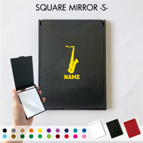 サックス 名入れコンパクトミラー 折りたたみ 小さい 卓上ミラー スタンドミラー 折立鏡 手のひらサイズ 楽器 吹奏 バンド 楽団 オーケストラ クラシック