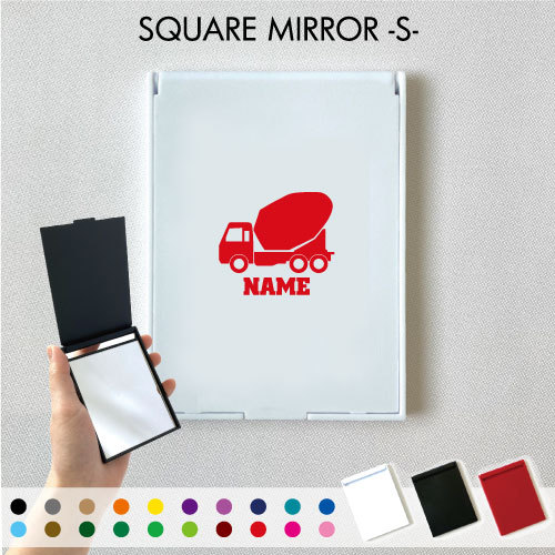 コンクリートミキサー車 名入れコンパクトミラー 折りたたみ 小さい 卓上ミラー スタンドミラー 折立鏡 手のひらサイズ 乗り物 車 はたらく 趣味