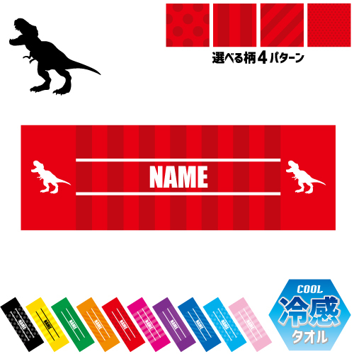 ティラノサウルス2 名入れ冷感タオル 冷却タオル クールタオル 暑さ対策 熱中症対策 恐竜 化石 肉食 草食 雑食 海 陸