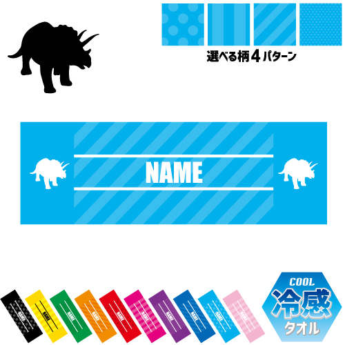 トリケラトプス1 名入れ冷感タオル 冷却タオル クールタオル 暑さ対策 熱中症対策 恐竜 化石 肉食 草食 雑食 海 陸