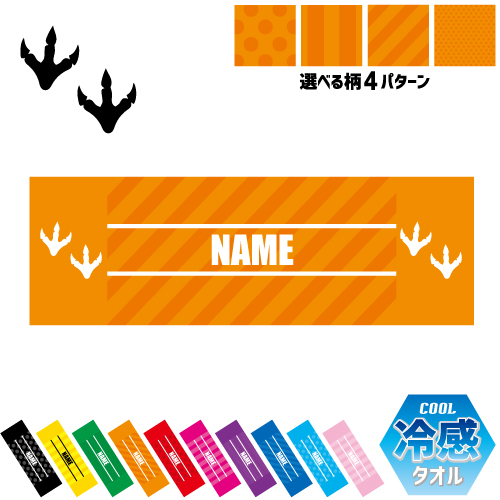 足跡4 名入れ冷感タオル 冷却タオル クールタオル 暑さ対策 熱中症対策 恐竜 化石 肉食 草食 雑食 海 陸