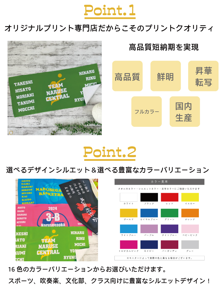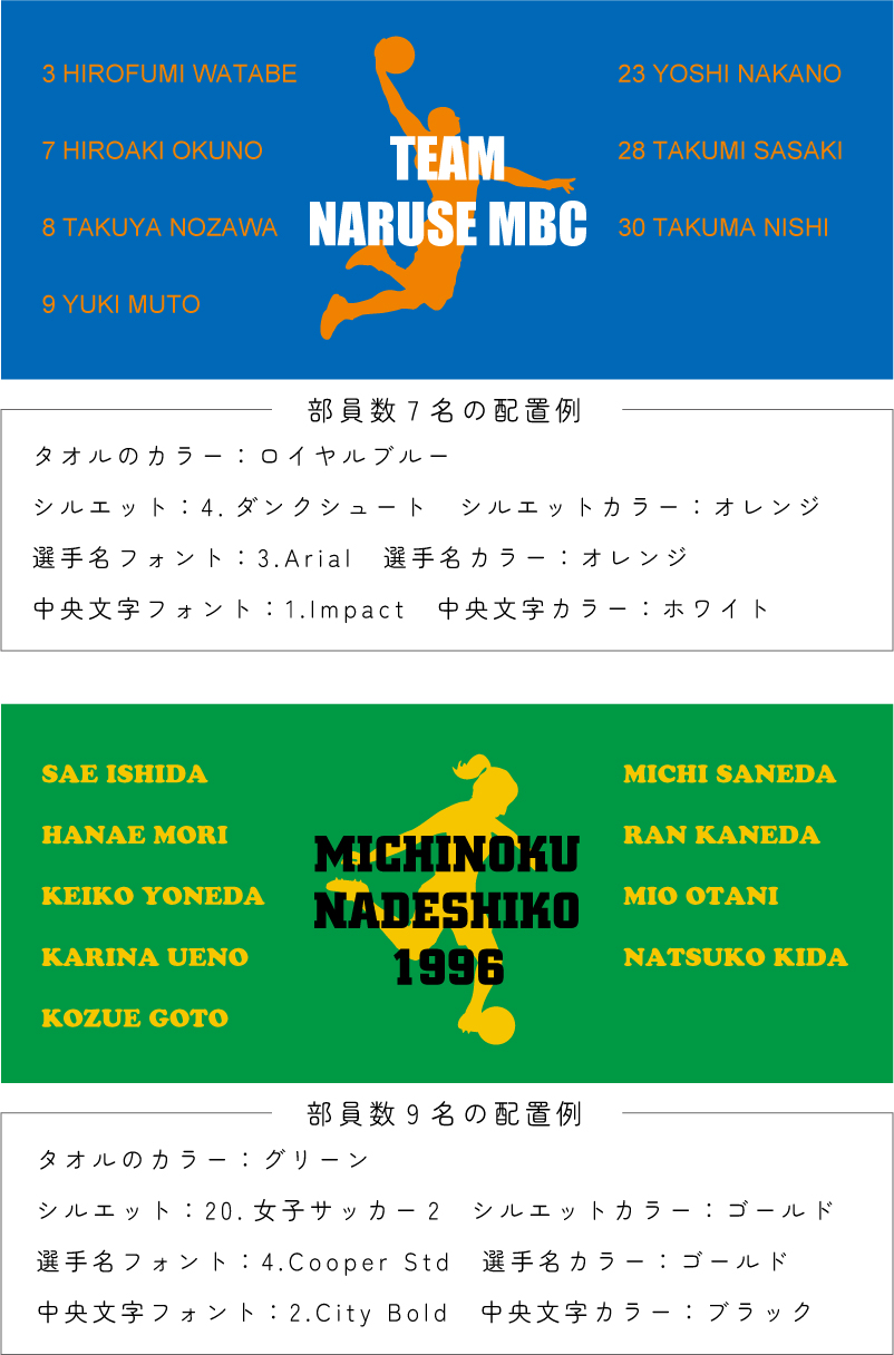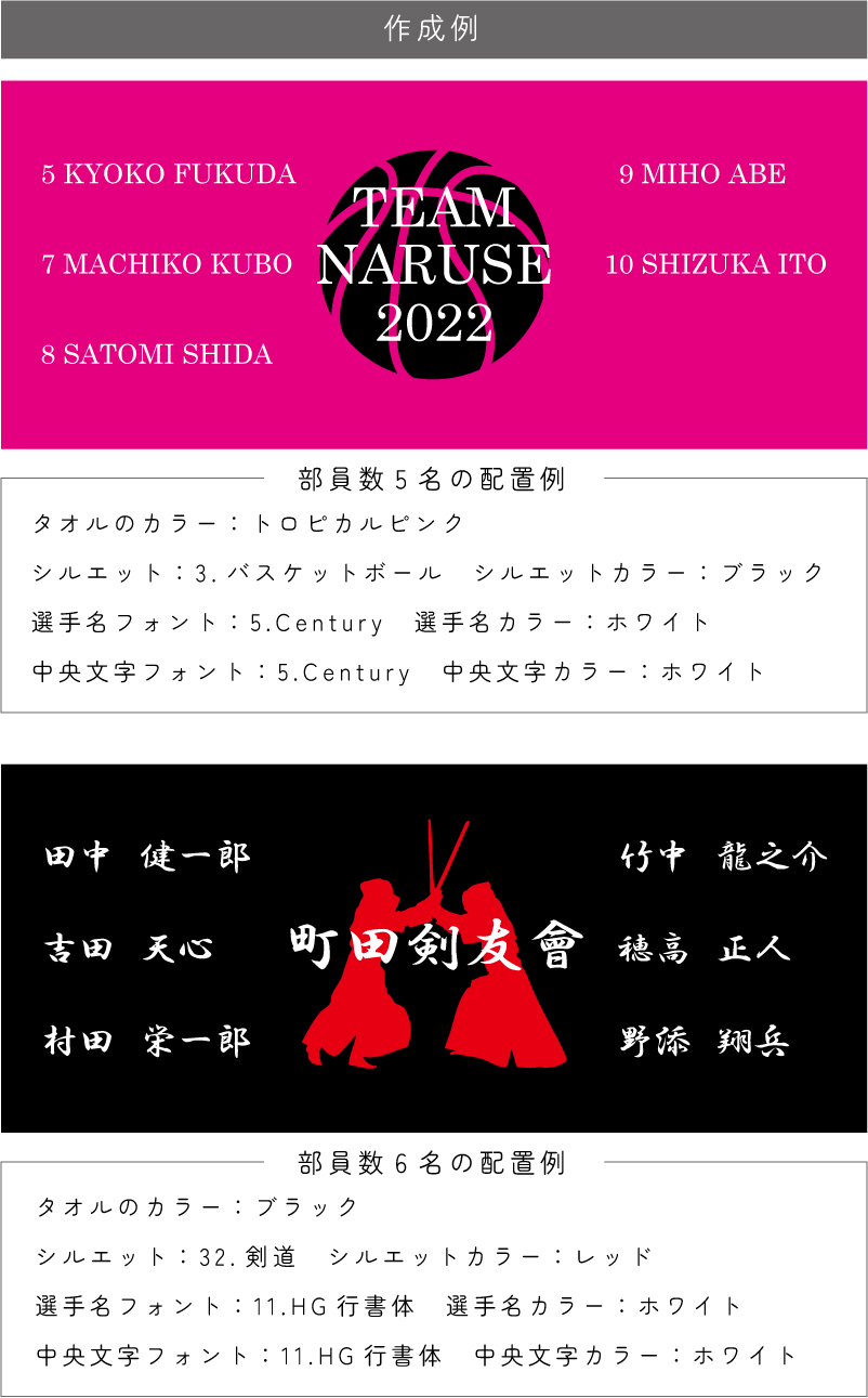 記念タオル作成 セミオーダーメイド ネーム&チーム名入れ 名前入れ サッカー 野球 バスケ バレー ハンドボール