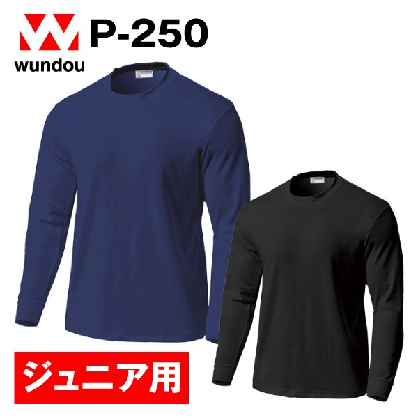 P-250 スクール長袖Tシャツ ネイビー ブラック ジュニア 子供用 練習着 チーム用ウェア 無地 メンズ レディース wundou ウンドウ