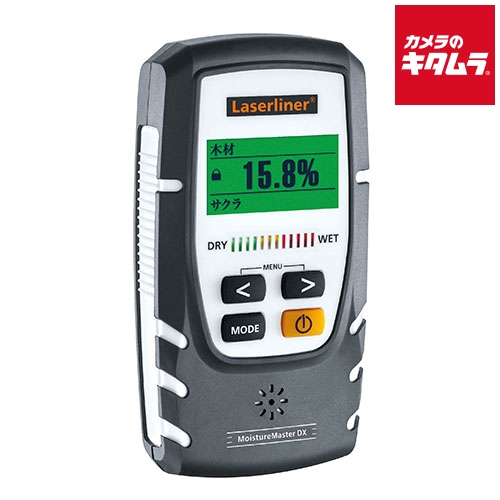 ●表示/機能:素材グループ選択(:68種)、CMモード(カーバイド法測定)、インデックスモード、自動ホールド機能、液晶バックライト、高含水アラーム、LED乾湿インジケーター、自動電源オフ、測定値表示、素材種別表示、棒グラフ表示、最大値表示