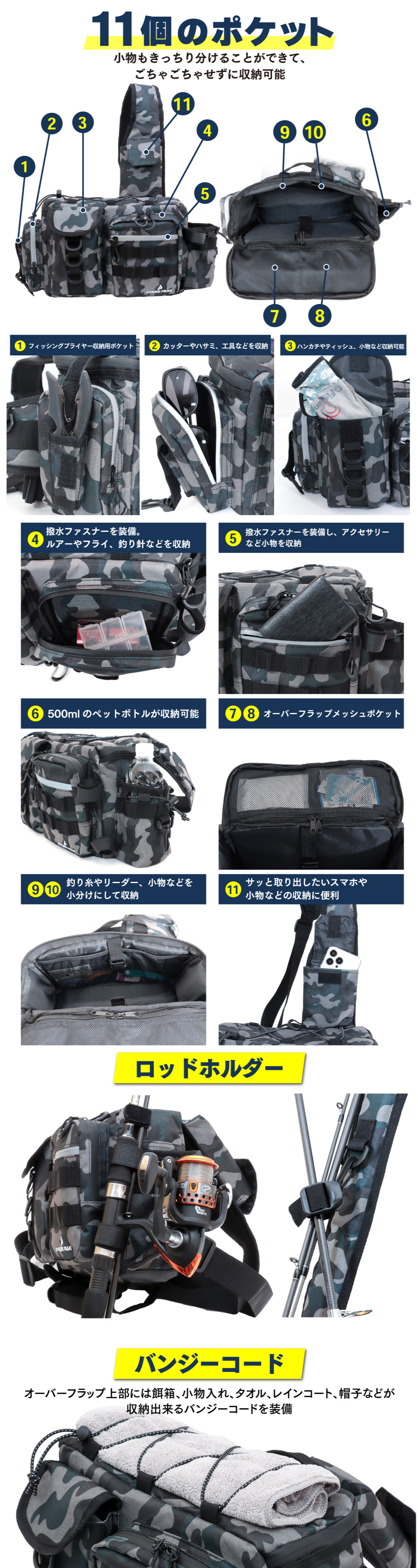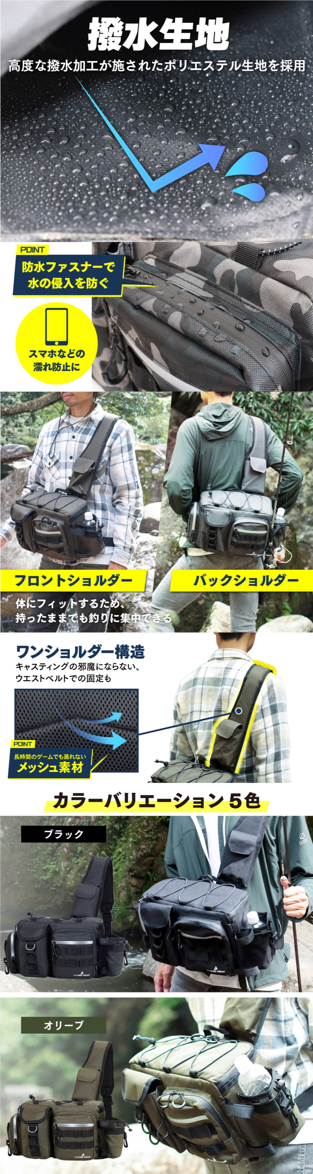 釣り用ショルダーバッグ Lサイズ コンパクト 撥水 おしゃれ パイクスピーク
