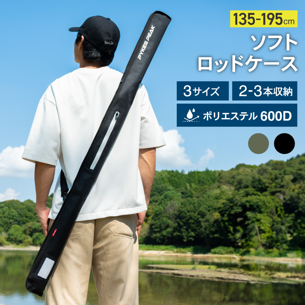 ロッドケース ストレートタイプ ソフト 135cm 165cm 195cm 釣り 竿 ケース 釣竿ケース ソフト 600D 最大3本入る 折りたたみ ショルダーベルト付き 選べる 2色 ブラック オリーブ PYKES PEAK