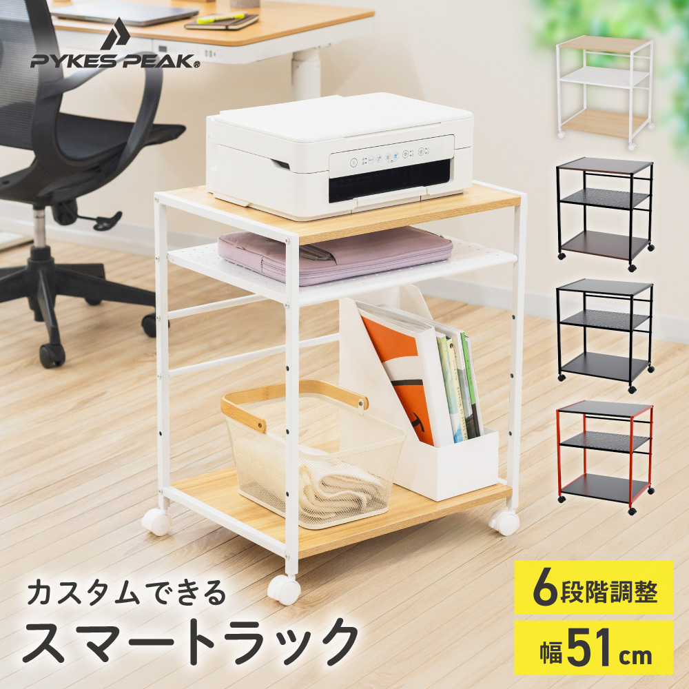 スマートラック 幅51 奥行40 高さ63cm 3段 棚 業務用 収納 ホワイト ブラック ブラウン レッド 段 カスタム可能 サイドラック PYKES PEAK