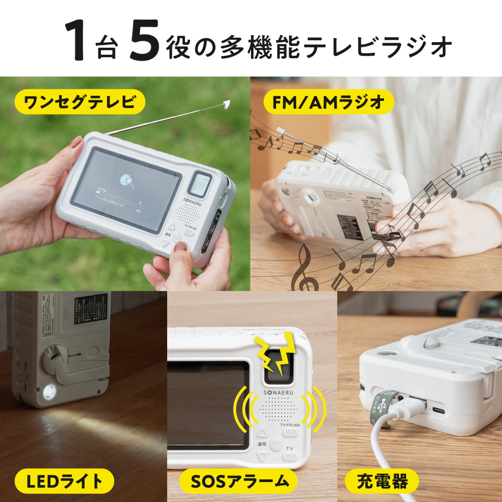 防災テレビラジオ 4.3in ワンセグテレビ FM AM LED ライト SOSアラーム ポータブルテレビラジオ 防災 手回し 小型テレビ SONAERU パイクスピーク 50off