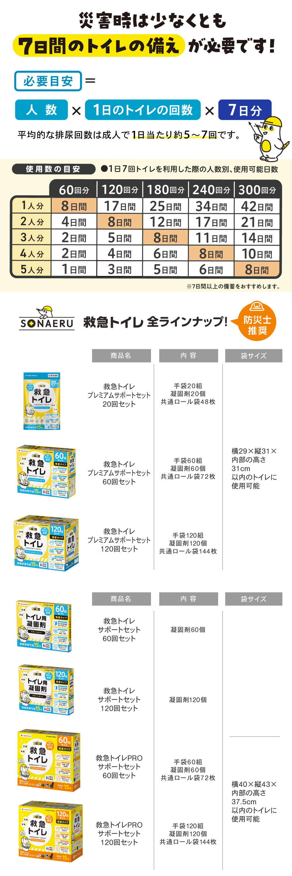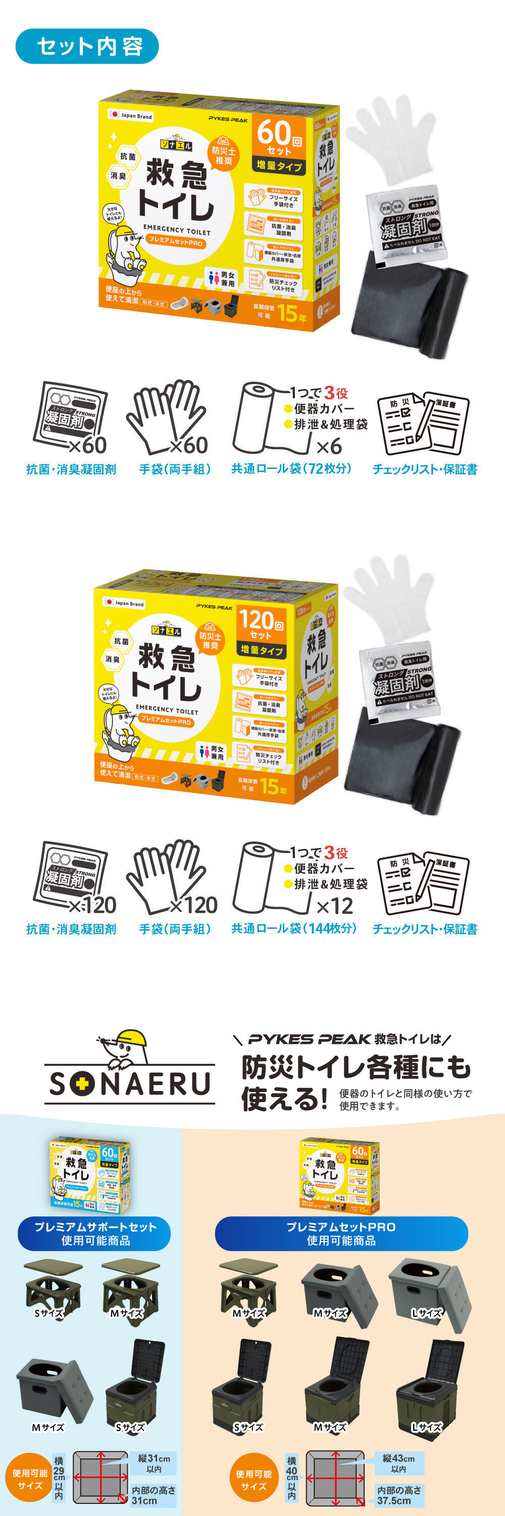 | セット内容 | ・プレミアムサポートセット 60回 凝固剤×60個 処理袋×72枚 使用方法説明/保証書×1 チェックリスト×1 化粧箱×1 手袋×60セット ・プレミアムサポートセット 120回 凝固剤×120個 処理袋×144枚 使用方法説明/保証書×1 チェックリスト×1 化粧箱×1 手袋×120セット ・サポートセット 60回 凝固剤×60個 使用方法説明/保証書×1 チェックリスト×1 化粧箱×1 ・サポートセット 120回 凝固剤×120個 使用方法説明/保証書×1 チェックリスト×1 化粧箱×1 |