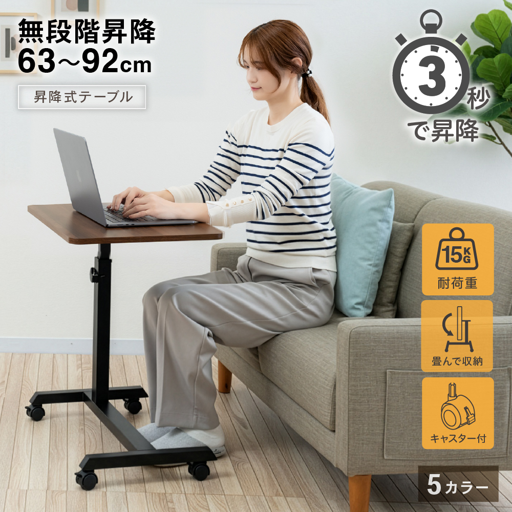 昇降式 サイドテーブル 机 折りたたみ キャスター付 サイドテーブル 40cm 60cm 隙間収納 パソコンデスク 介護 ベッドサイド PYKES PEAK