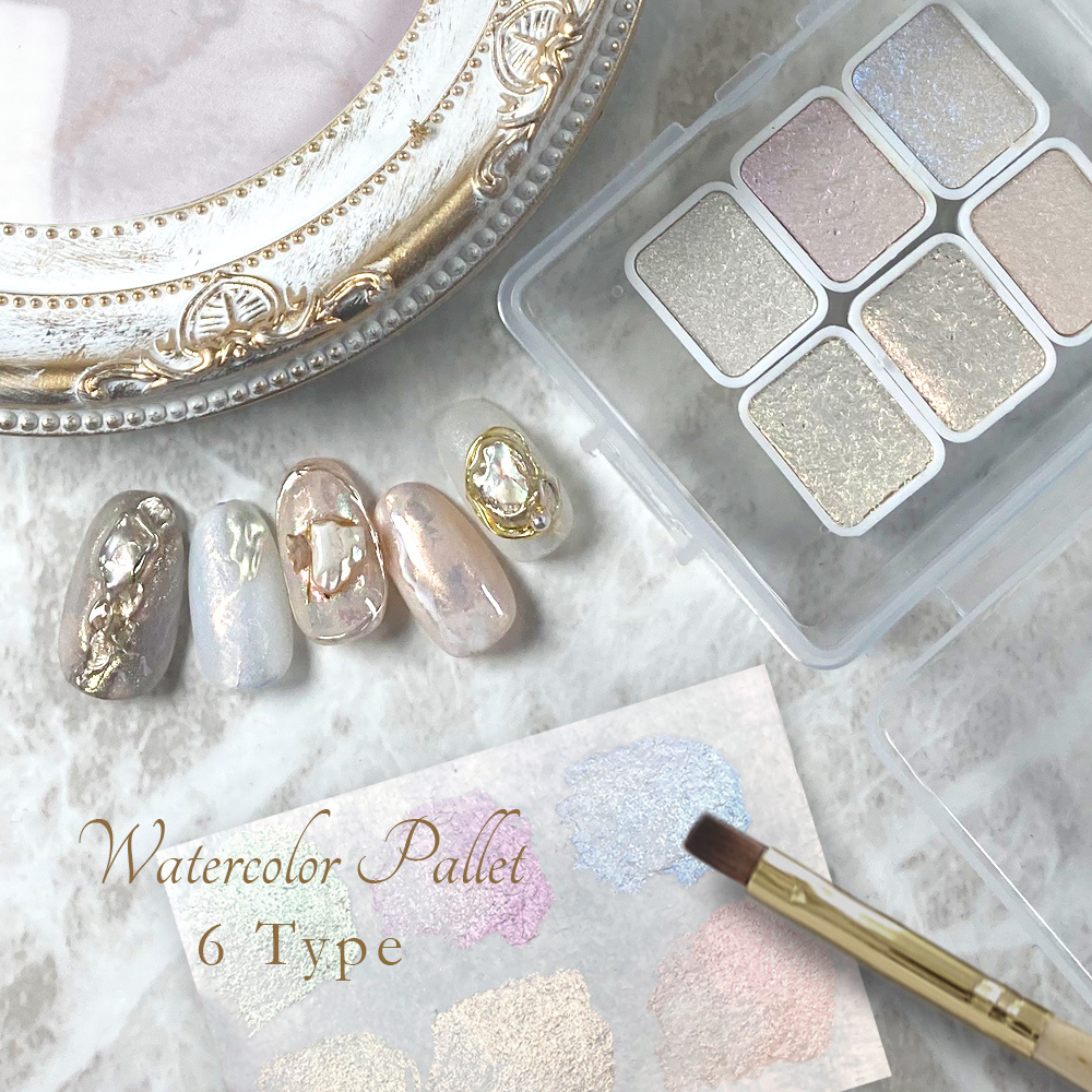 メタリックパール入り【水彩パレット 全5種】 ニュアンスネイル 大理石ネイル 水彩アート