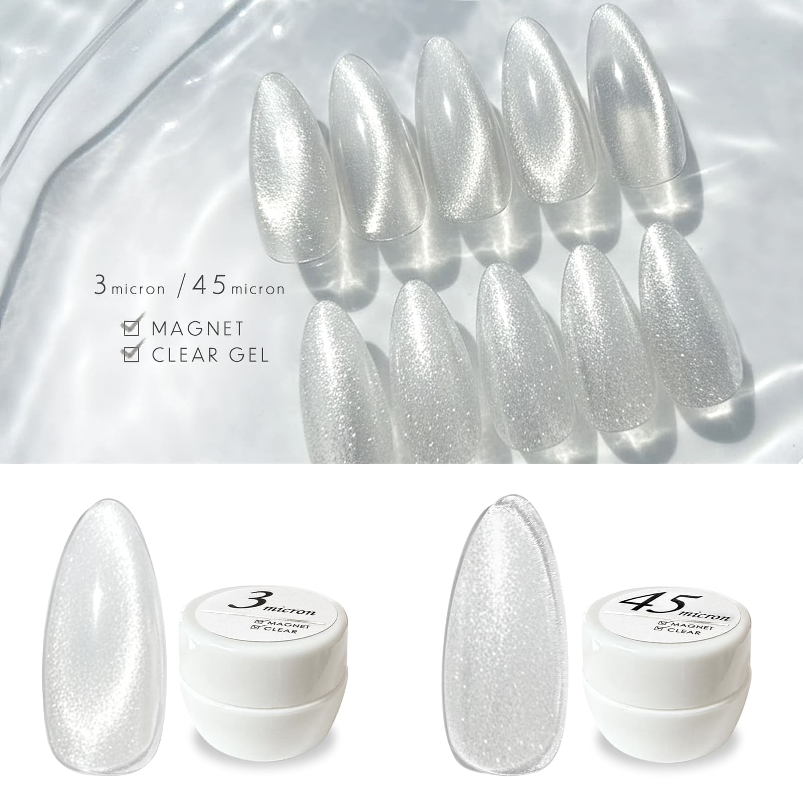 透明感と輝きを自在に楽しめる、クリアタイプのマグネットジェルです。