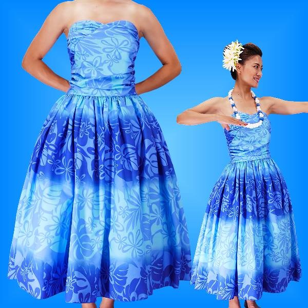 フラダンス ムームー フロントドレープミディ丈ドレス ブルー Fサイズ 2259blF