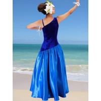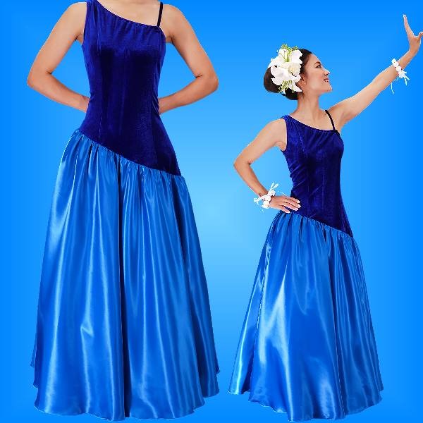 フラダンス ワンショルダー ベルベット・シャンタン斜め切り替え ドレス ブルー Fサイズ 2289blF