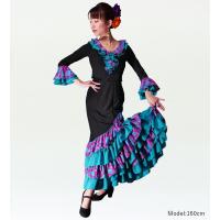 フラメンコ ローズ&水玉 フリル マーメイド ファルダ スカート ブラック×パープル フリーサイズ 2350bpf