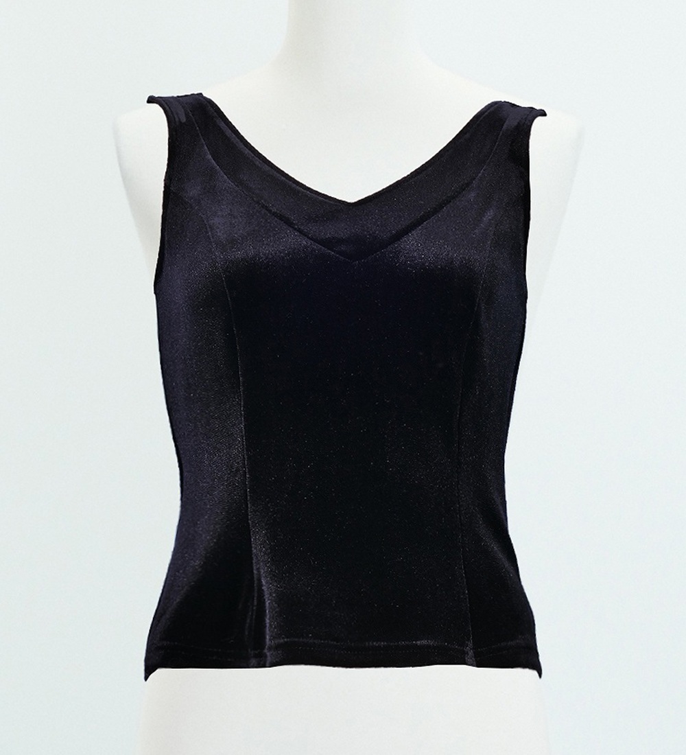 柔らかく上品な肌触りと深い光沢感を持つベルベットノースリーブブラウス。